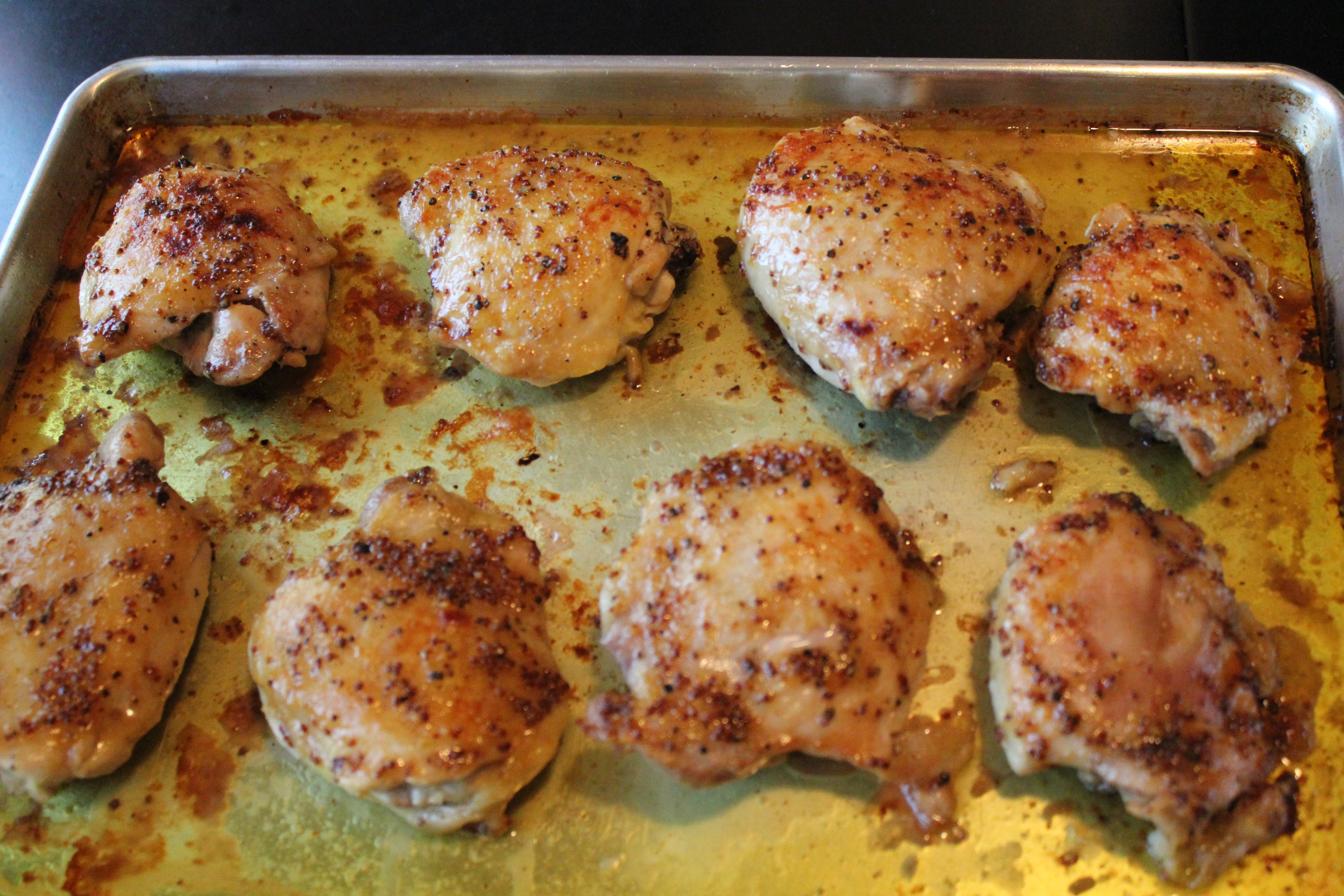 All you need to enjoy this tonight is chicken thighs, lemon juice, olive oil, salt & pepper, honey and grainy mustard. Find the actual recipe here.