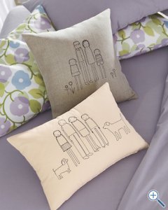 Or consider these family portrait pillow covers also from Garnet Hill. They are customizable and you can choose from 35 line-drawn characters to represent your brood. I am currently plotting where I can put one of these little works of art in my home.