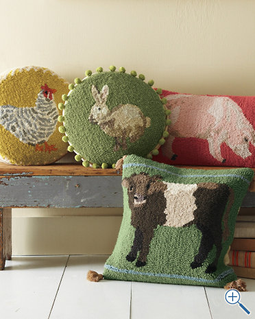 You can get pillow covers from a lot of different stores. Look at these adorable animal portrait hooked wool pillow covers from Garnet Hill. The pastel colors and playful theme scream spring!