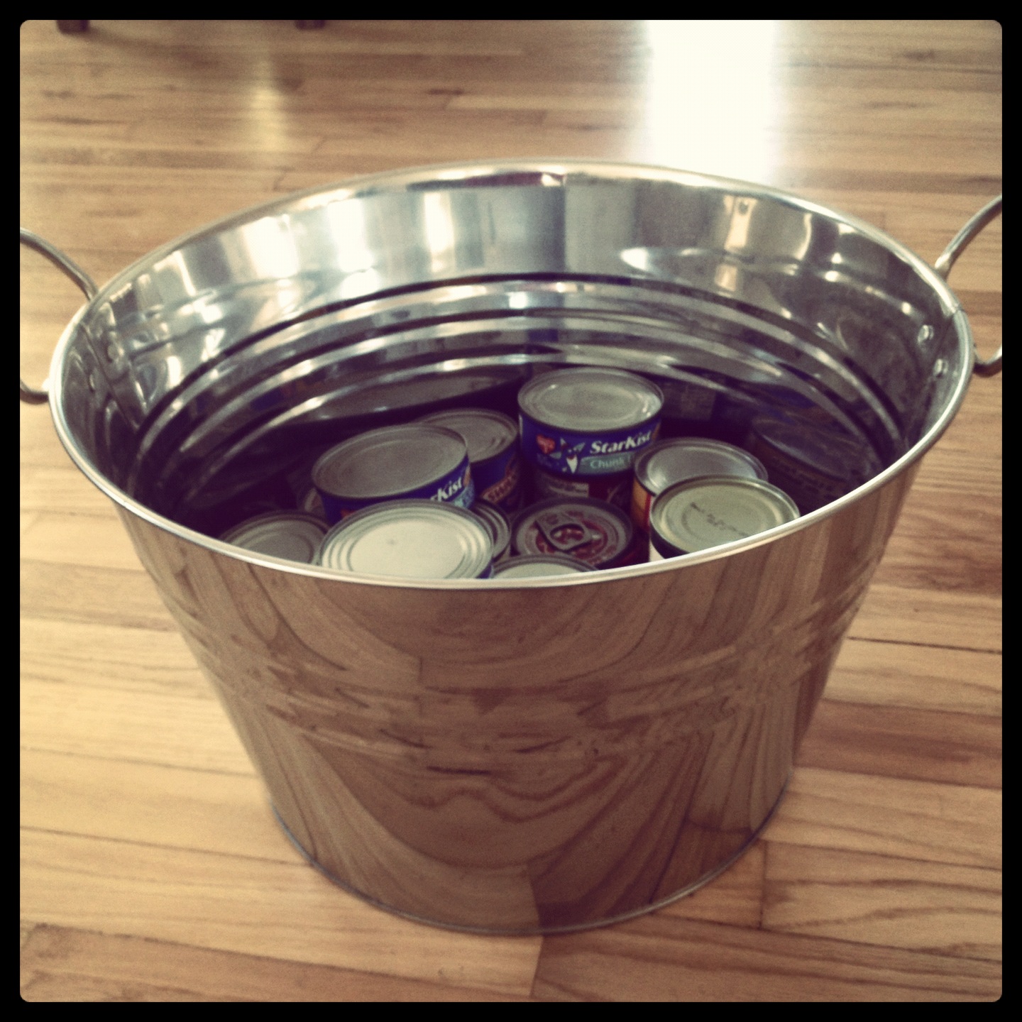 Now let’s move on to more pleasant uses, shall we? Like storage! This stainless steel beverage tub/bucket from Target makes our canned goods feel right at home in our pantry…you know…right before they’re eaten.