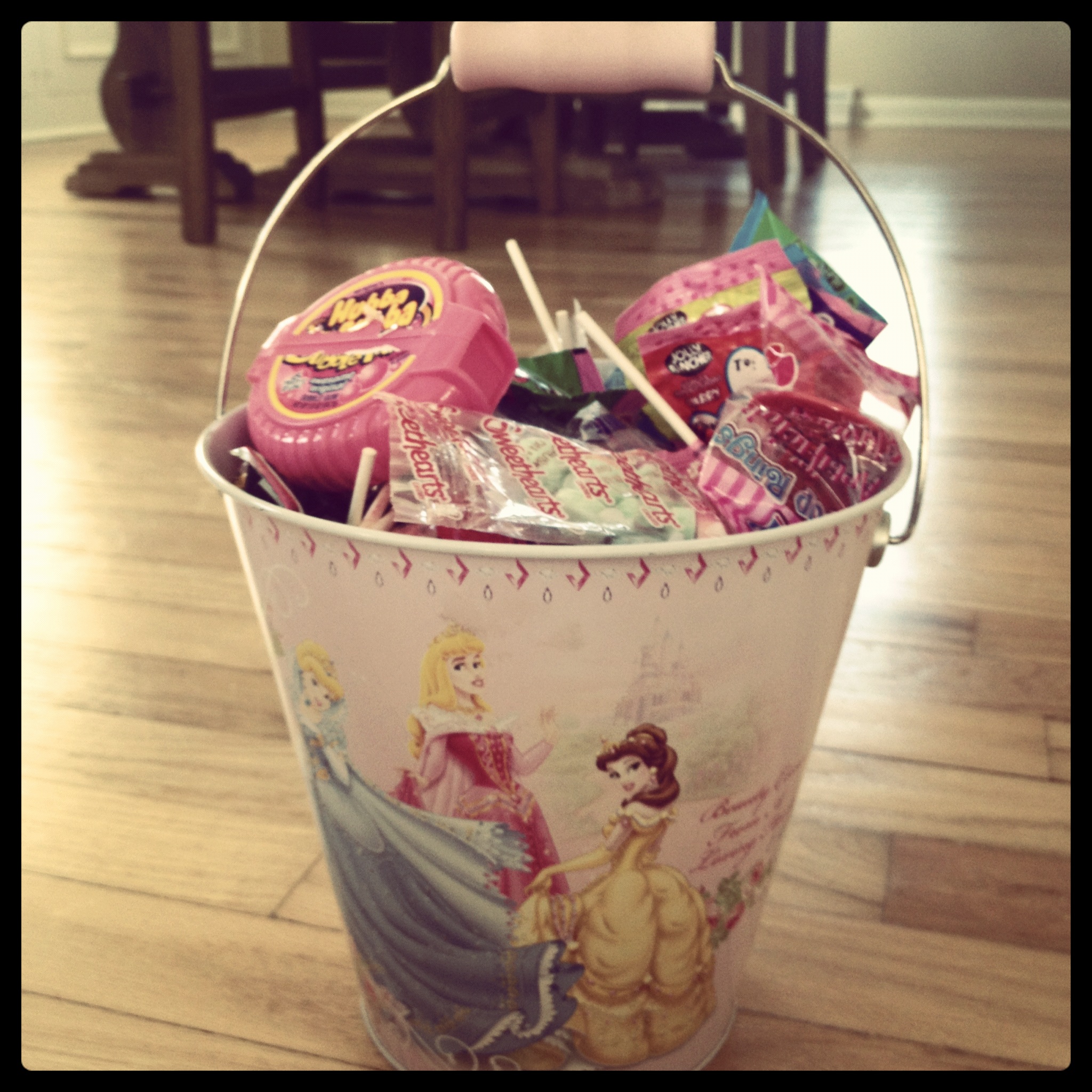 Our beauties’ candy stash finds a home in this princess bucket. Sweet meets sweet. Beaut.two is even willing to power through all that princess to get to that candy! I love all the pink.