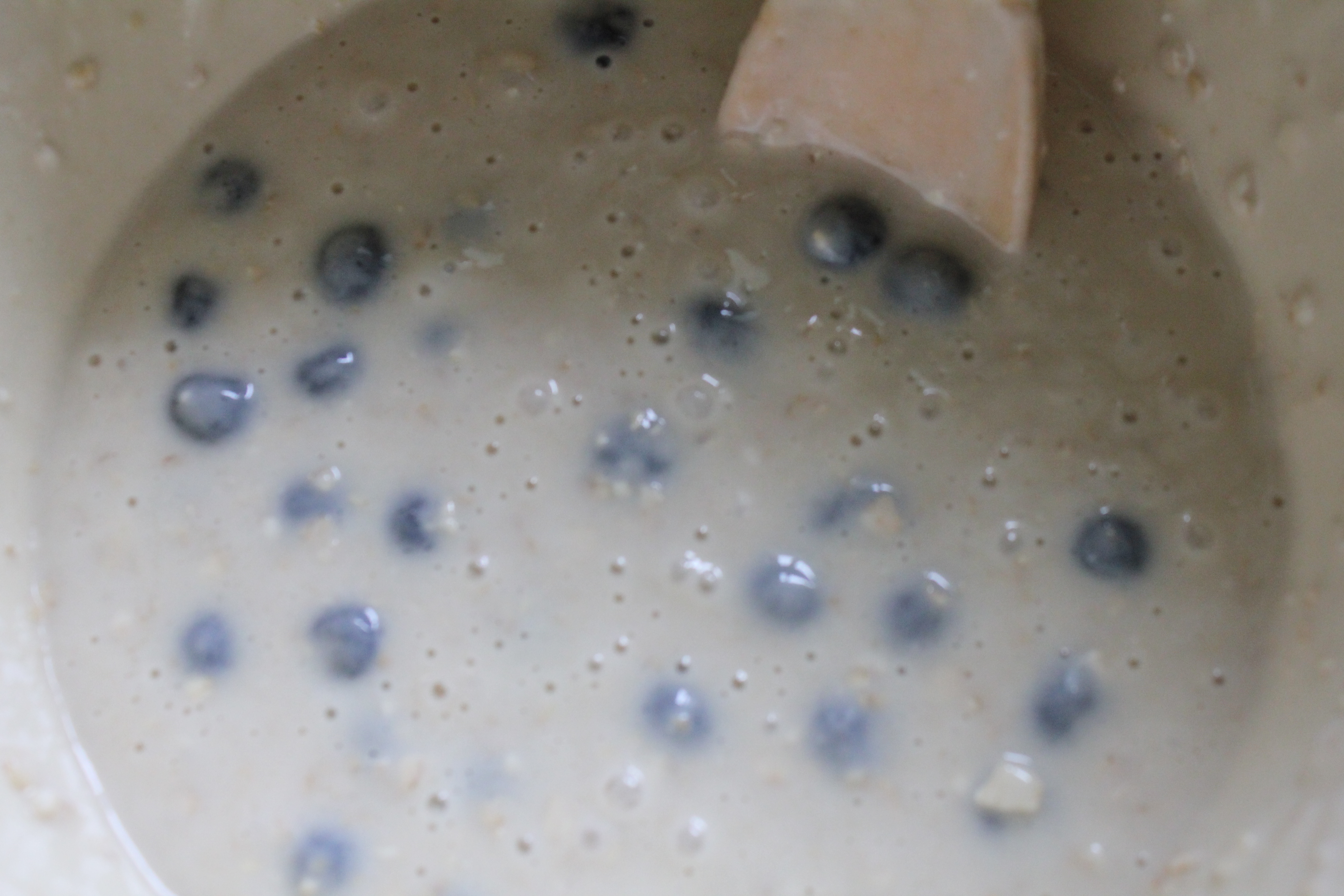 Stir milk mixture into dry baking mixture just to combine. Add blueberries and stir. Using an ice-cream scoop, place batter in muffin cups. Sprinkle tops with remaining 1 Tbs. sugar.