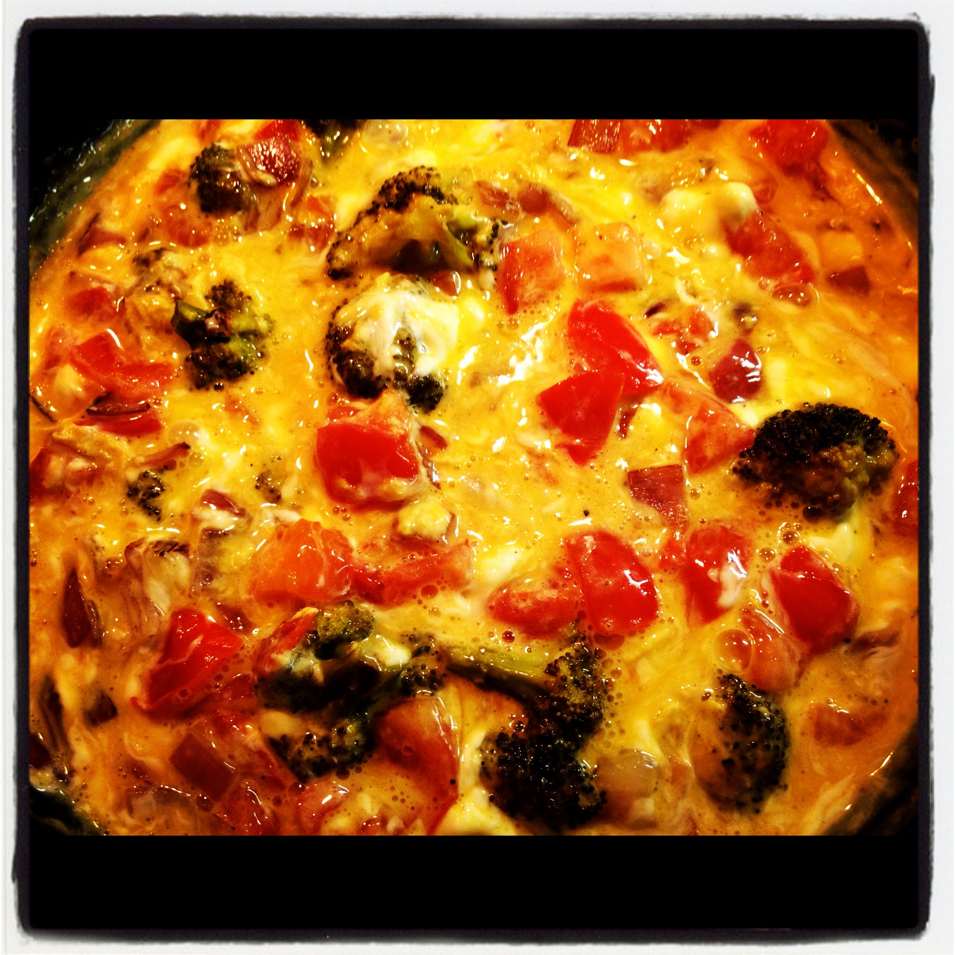 Add broccoli and (extra) tomato and season with salt and pepper.