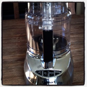 So here’s what happened. In preparing for today’s yumminess, I began reviewing the recipe again so I could figure out timing, make sure I had all the ingredients I needed and see if there was any prep I could start ahead of time. I know. So responsible, right? And it was during this very process that (insert large ‘GULP!’ here) I realized I had made a pretty major mistake. Imagine my surprise when a food-processorless (totally made-up word alert!) individual like me realized that a food processor was a necessary appliance to make this dish. Oh boy. Now I had had a lovely food processor at one time. It was a hand-me-down and had processed its last more than a little while ago. Up until this point, I had managed to use my trusty blender or my good ol’ knife to handle all food processor-type tasks. But there was no circumventing the processor this time. It finally had my number. And it knew it had the upper hand because time was not on my side. It is at this point I realized that I had but two options. Option #1: Ditch the recipe and call four days under my belt good enough and live with the eternal regret of never knowing the sweet taste of victory. (O.k., so that may be a wee bit on the dramatic side.) Option #2: Blow my $50 dream week budget and go get me a food processor.
