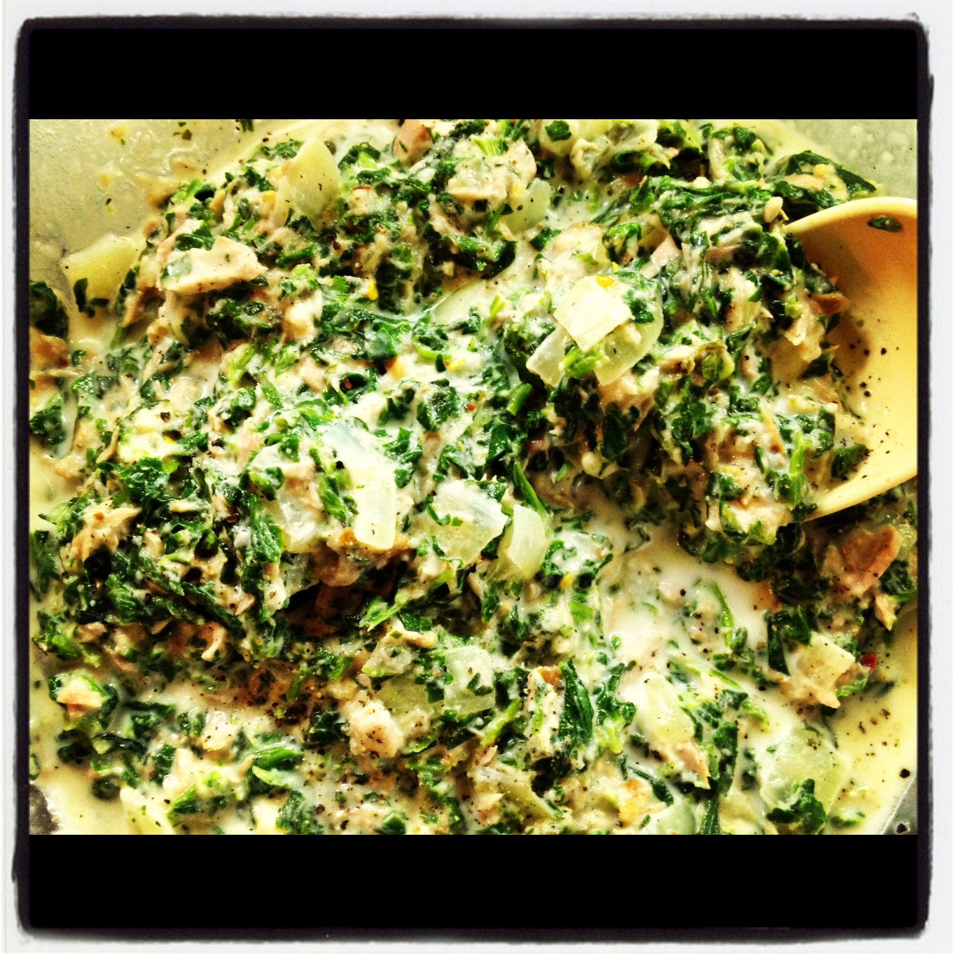 On to today’s recipe, creamy shells with tuna and spinach!