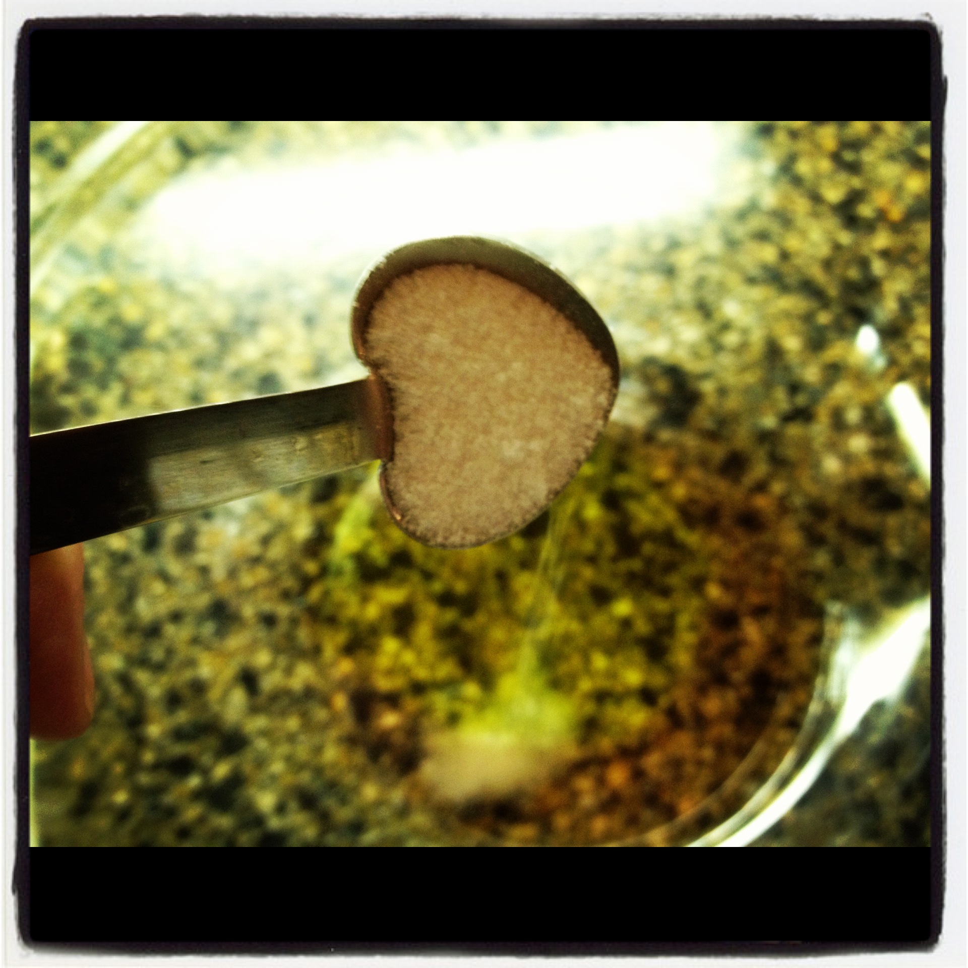 1/2 teaspoon sugar, (Isn’t it just plain ‘sweet’ that the sugar is being measured by a heart? Nothing gets by me.)