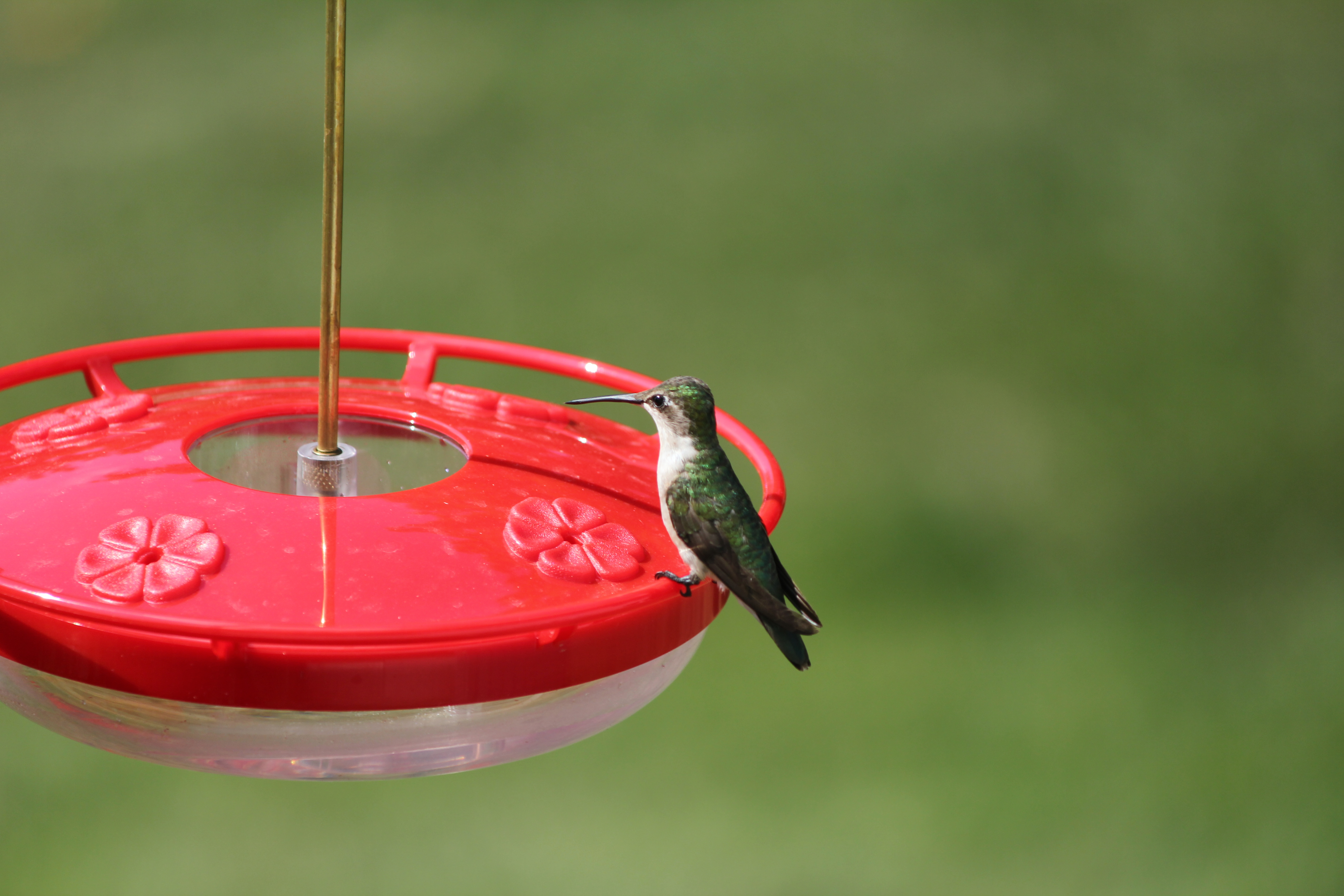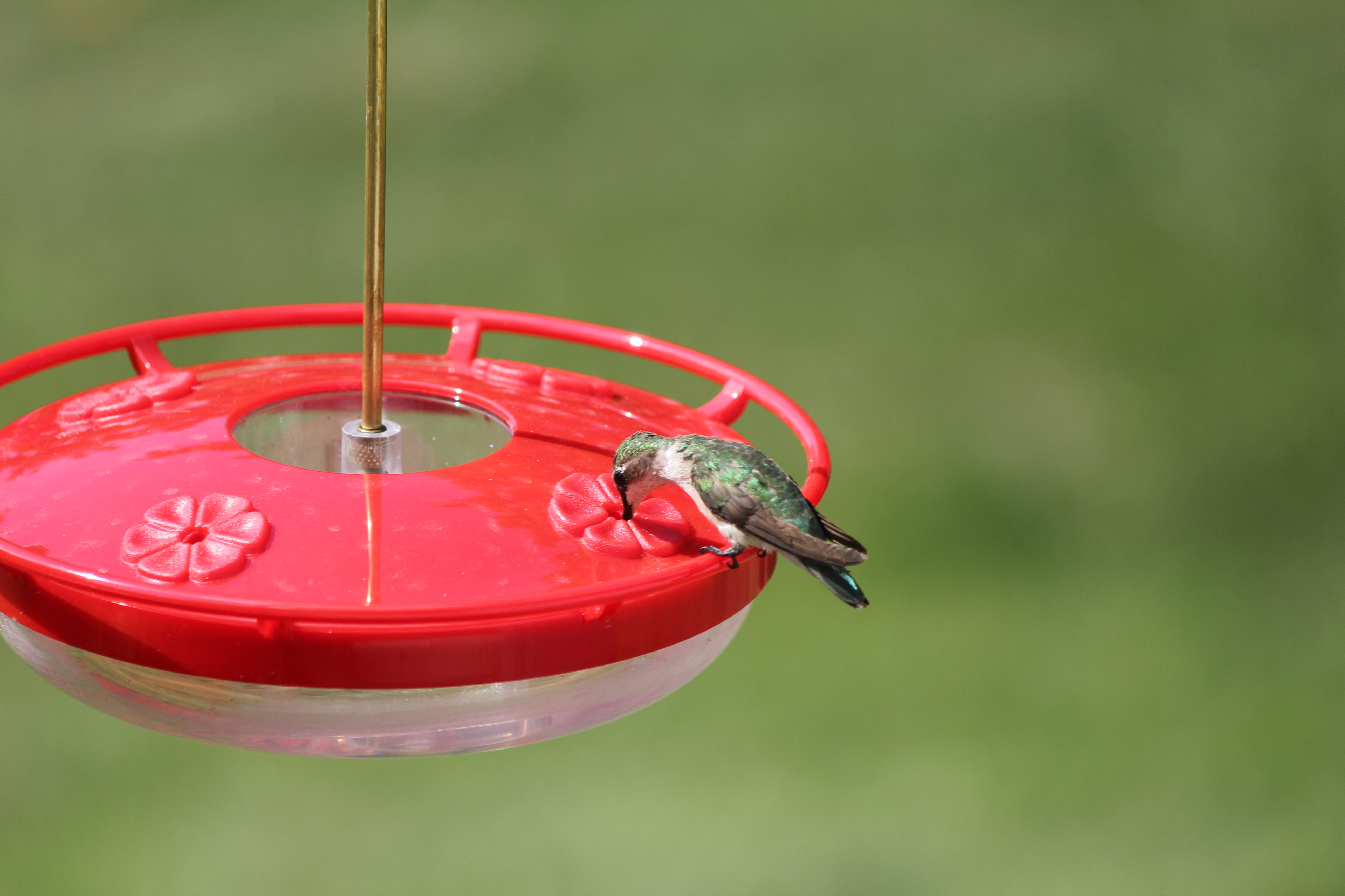 Goldfinches, house finches, juncos and cowbirds join us too. And last year for my hubby’s birthday the kids and I got him this hummingbird feeder.