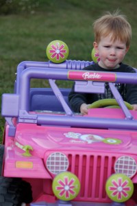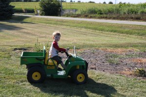 My young ones driving a jeep or a tractor is also common around here. A toddler manning any type of vehicle is just pure madness.
