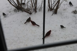 And my personal favorite? The cardinals. Here they are dining on the fallen seeds after a snowfall. Beautiful and tidy. That’s why I love them so!
