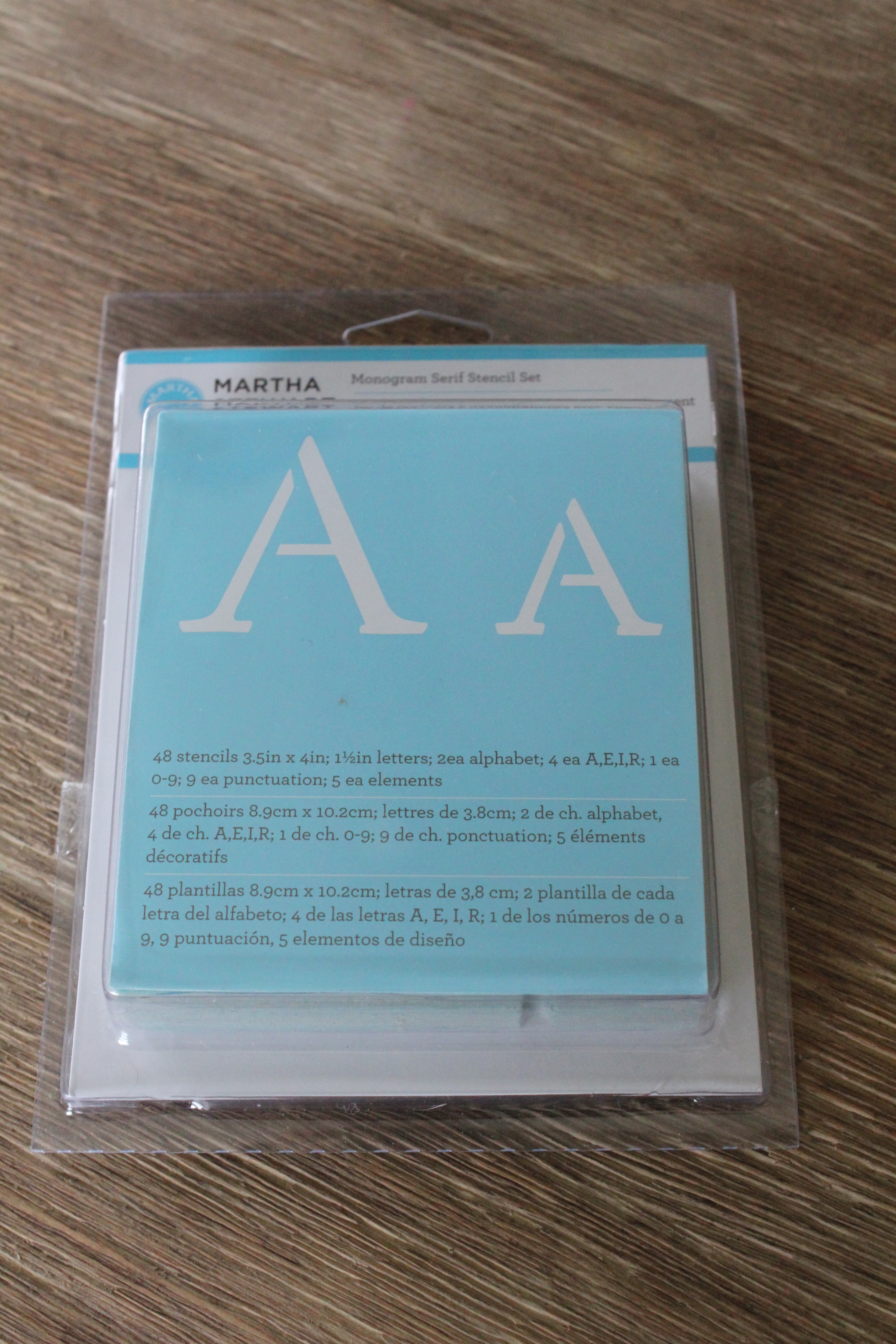 Now for some stencilin’.  The stencil kit I used was Martha Stewart Crafts Monogram Serif Stencil Set.