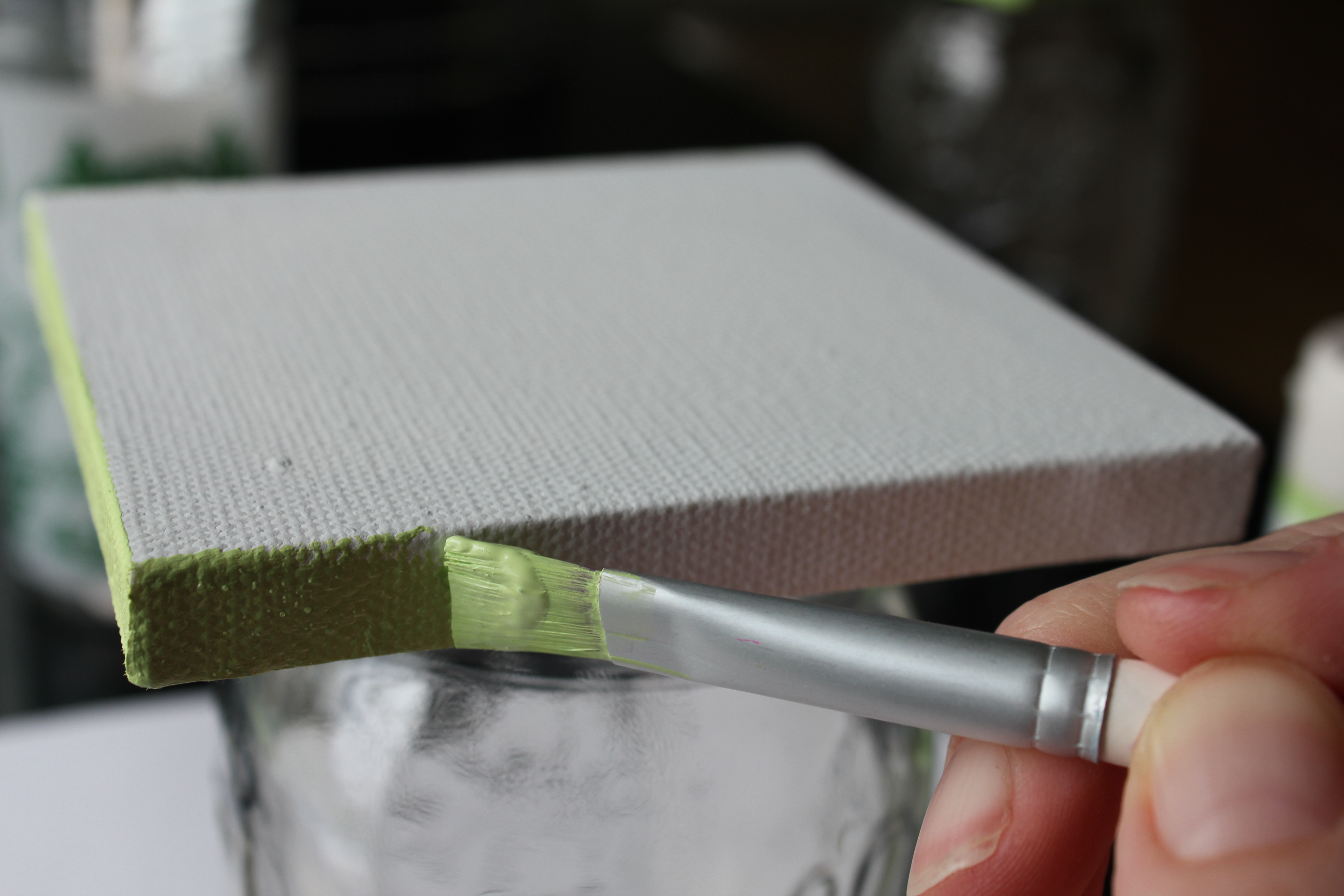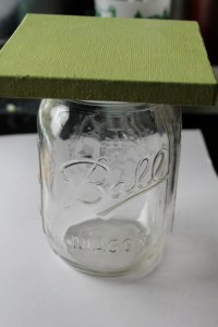 I used mason jars (oh I how love you!) to hold the canvas while I painted.  And then they became a perfect drying rack.
