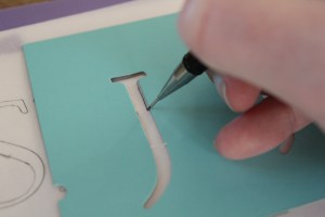 Admire your work.  Admire your steady hand.  Admire your supreme pouncer skills.  (Sorry I just had to!)  And then stop admiring and repeat the process for the rest of your letters.