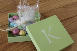 I spied these white jewelry boxes at Jo-Ann Fabric and thought they would make a perfect treat box for my little guests.