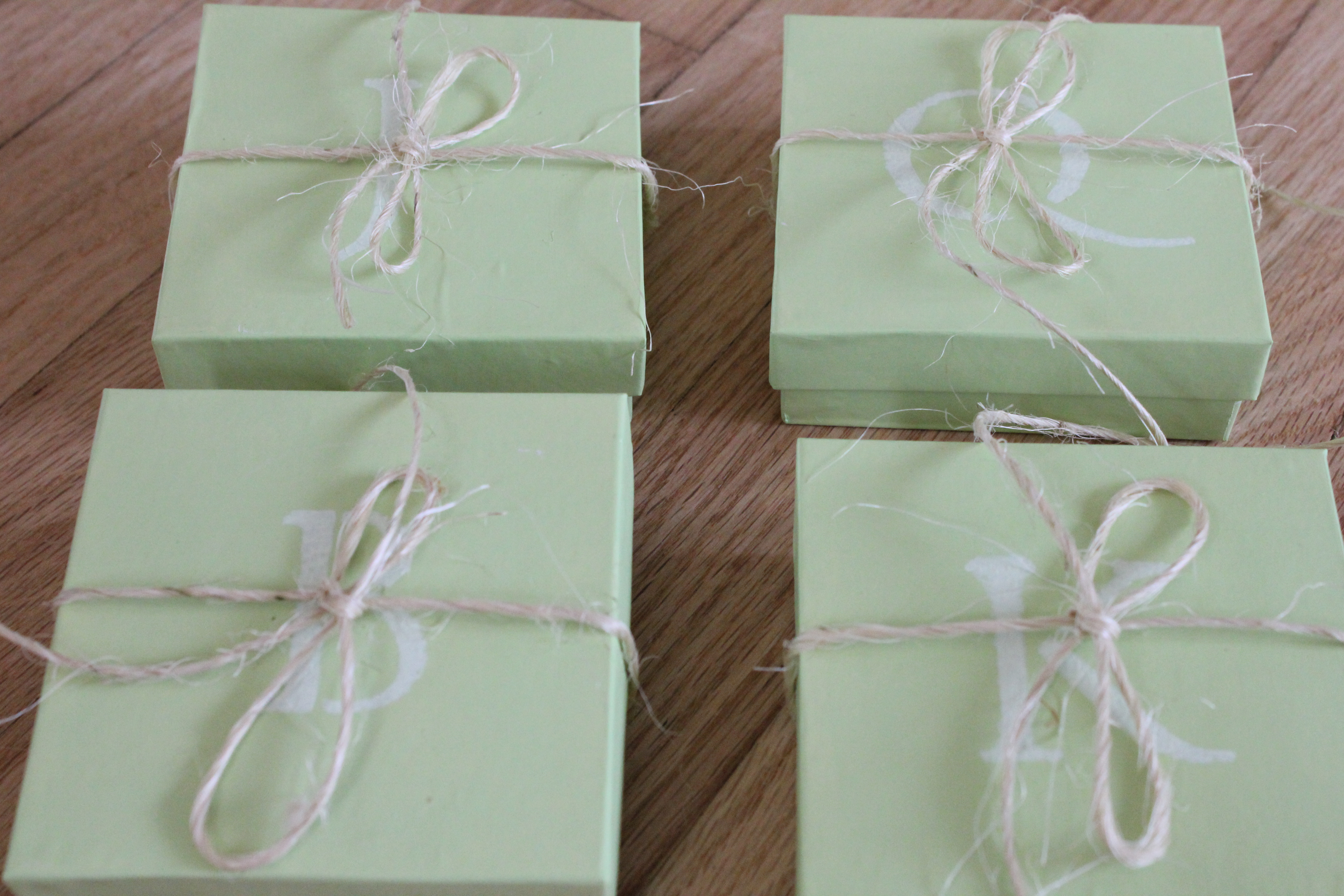 My craft paint got another workout.  I painted the outside of the boxes first.