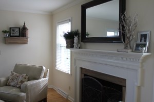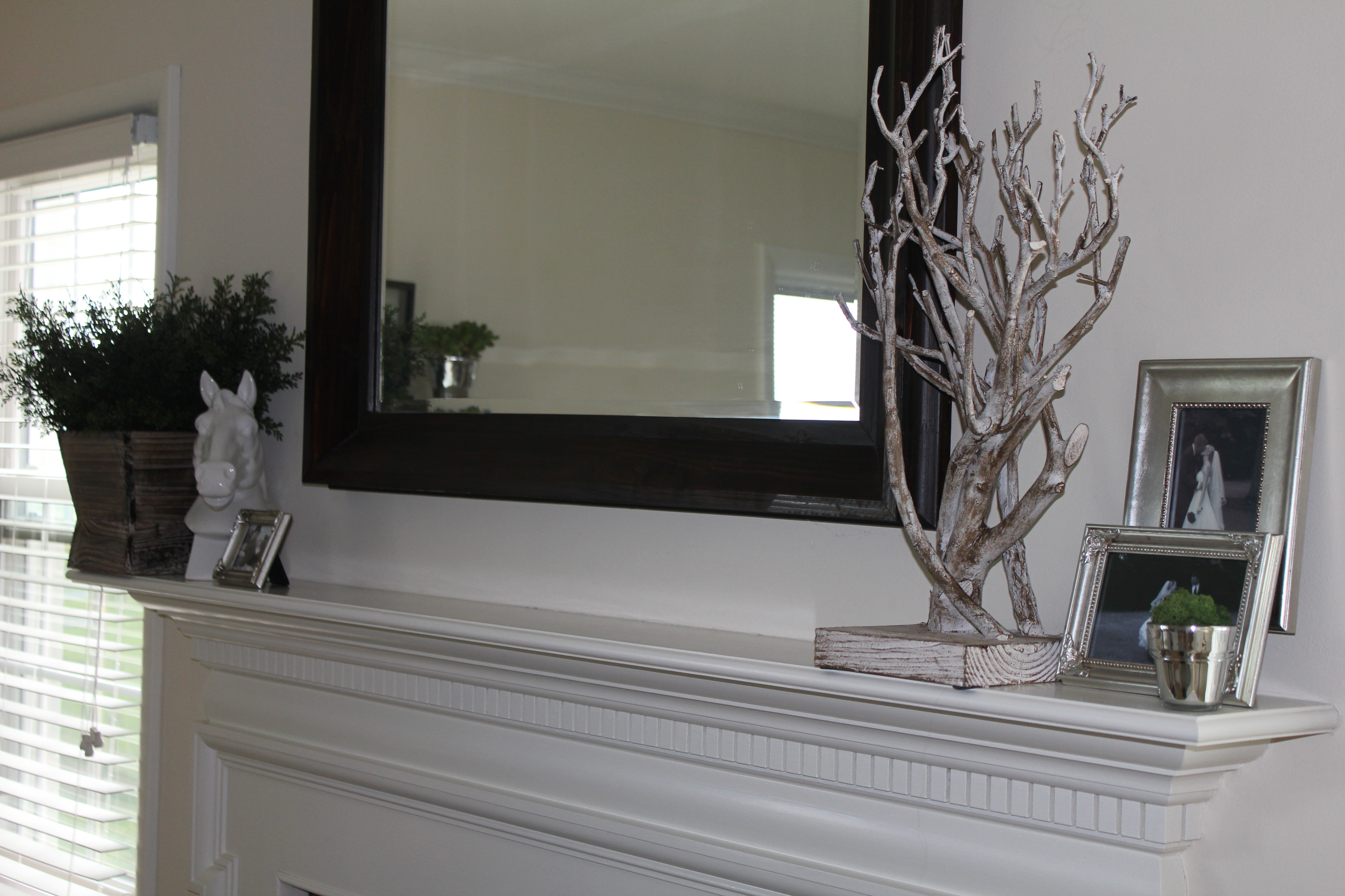 And on to more swicheroo-ing!  Our fireplace mantel before.  (Sorry, the lighting was terrible when I snapped this.)