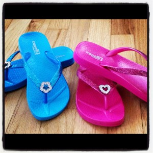 And for $5.99 a piece we figured it wasn’t worth the stress of choice. Glitter and jewels all in one shoe? A hit with any young lady for certain. And the mom in me loved the thick padding and comfort of these since most flip flops aren’t exactly known for their superior foot support.