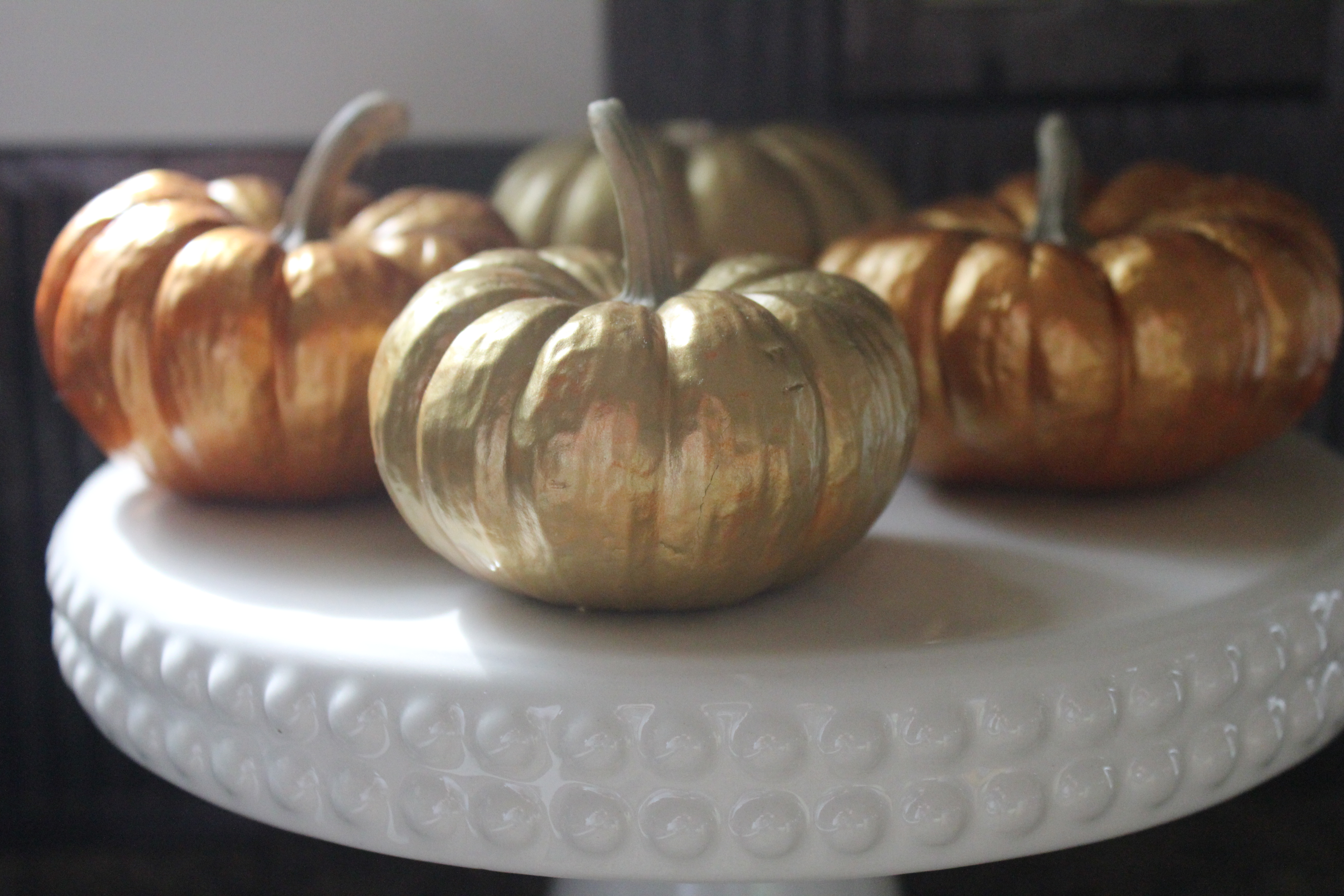 In hindsight, I may have gone a wee bit nuts in the craft paint/pumpkin department this year. But I won’t apologize. I love these little metallic numbers. And my kitchen does too. And my kids can’t quit talking about them. O.K. That’s not at all true. But me and my kitchen are huge fans. HUGE!