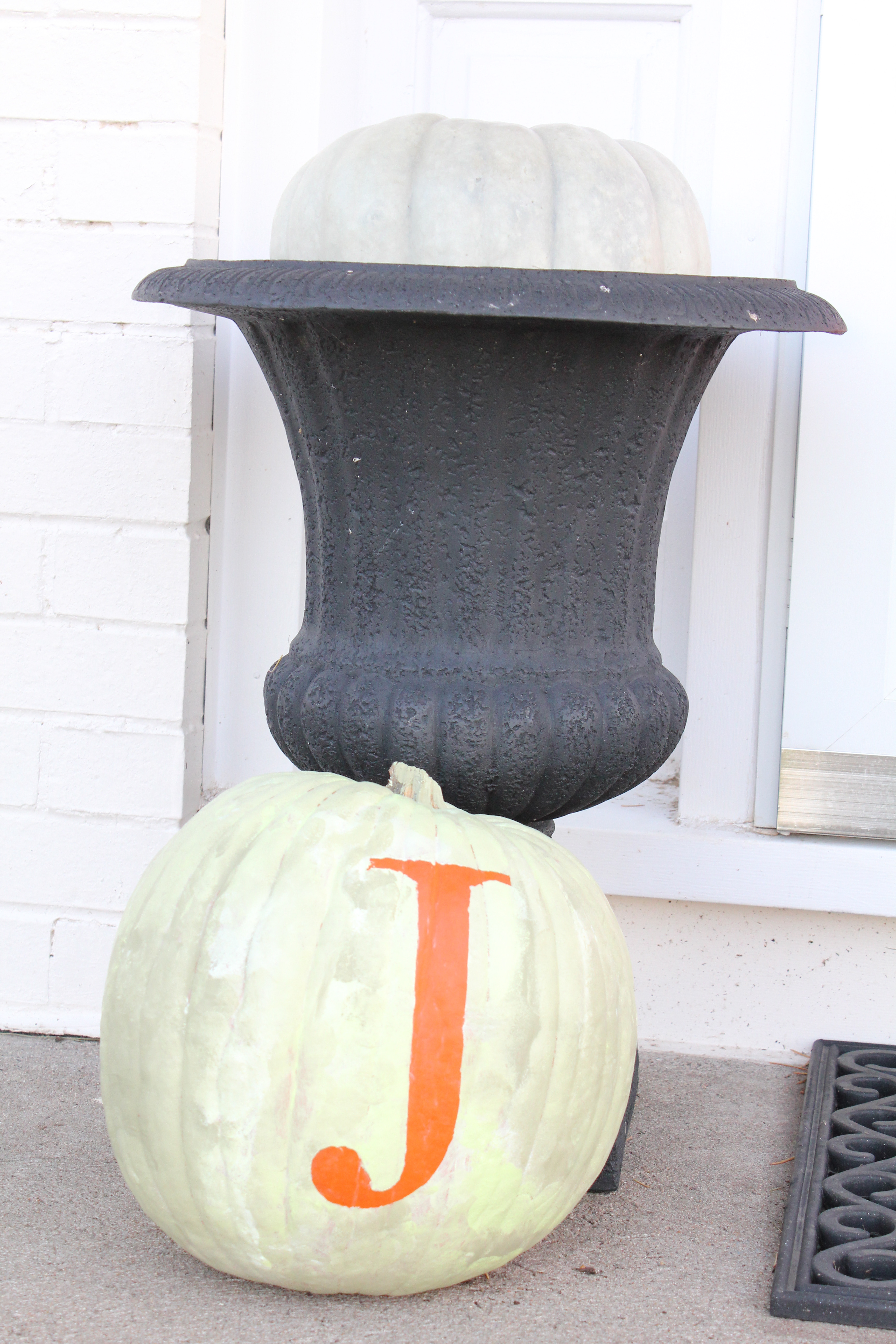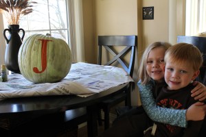 The monogrammed pumpkin was one of the cheapest craft projects we have ever completed. And the kids had a blast creating it! I scored this decent looking (beggars can’t be choosers) pumpkin a few short days before Halloween for $1.00. Yes!