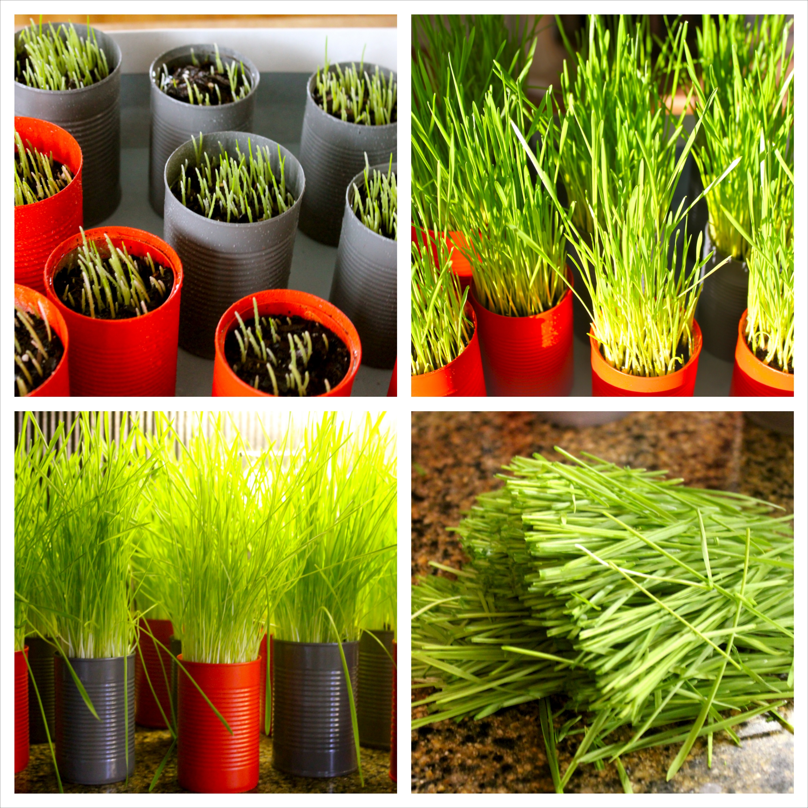 With the containers ready, now it was time to put my green thumb to the test and grow us some wheat grass. In hindsight I am really glad this worked out. I had never grown wheat grass before and I had no party centerpiece back-up plan. No centerpiece back-up plan? I am constantly living on the edge I tell ya!