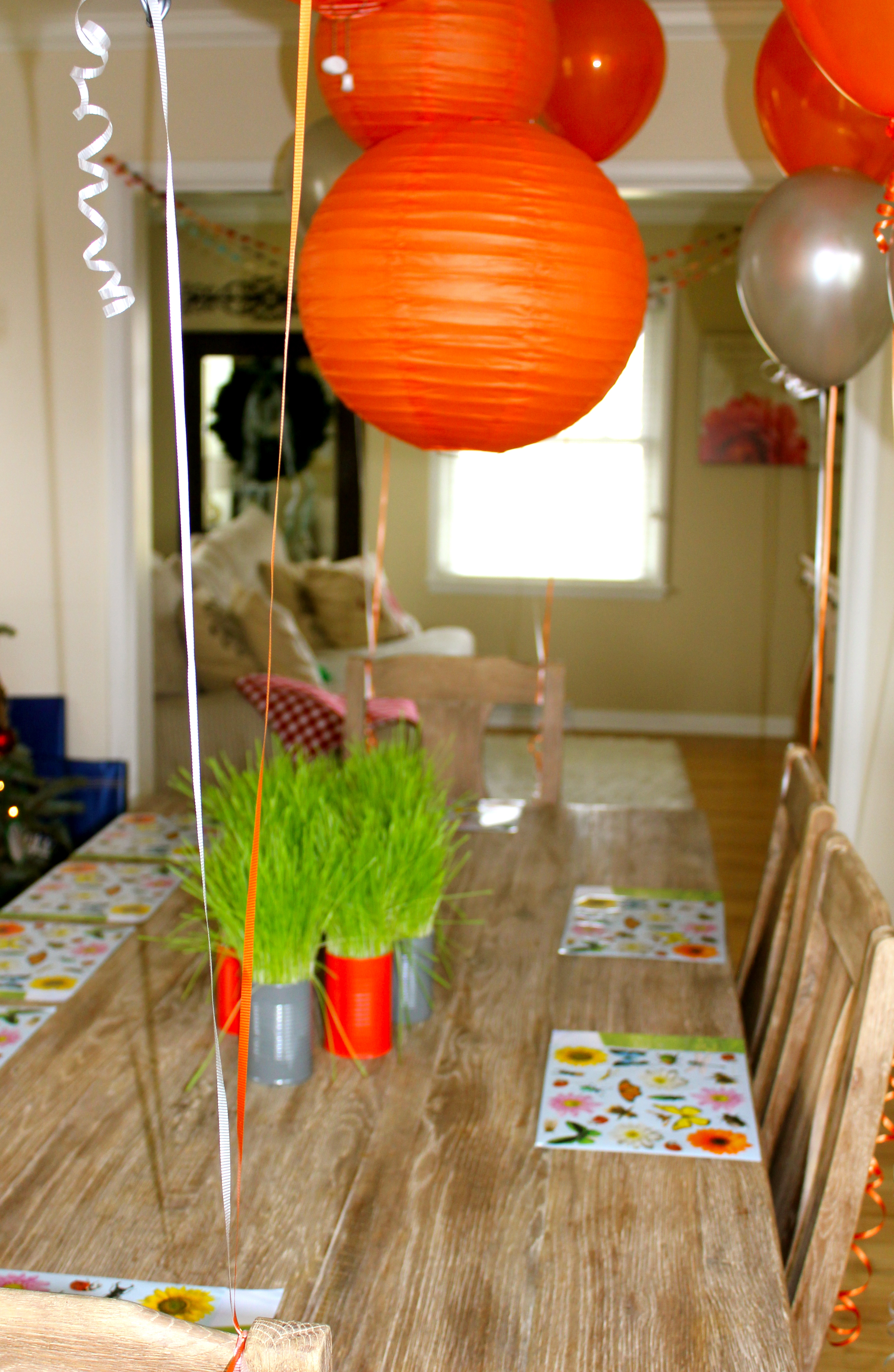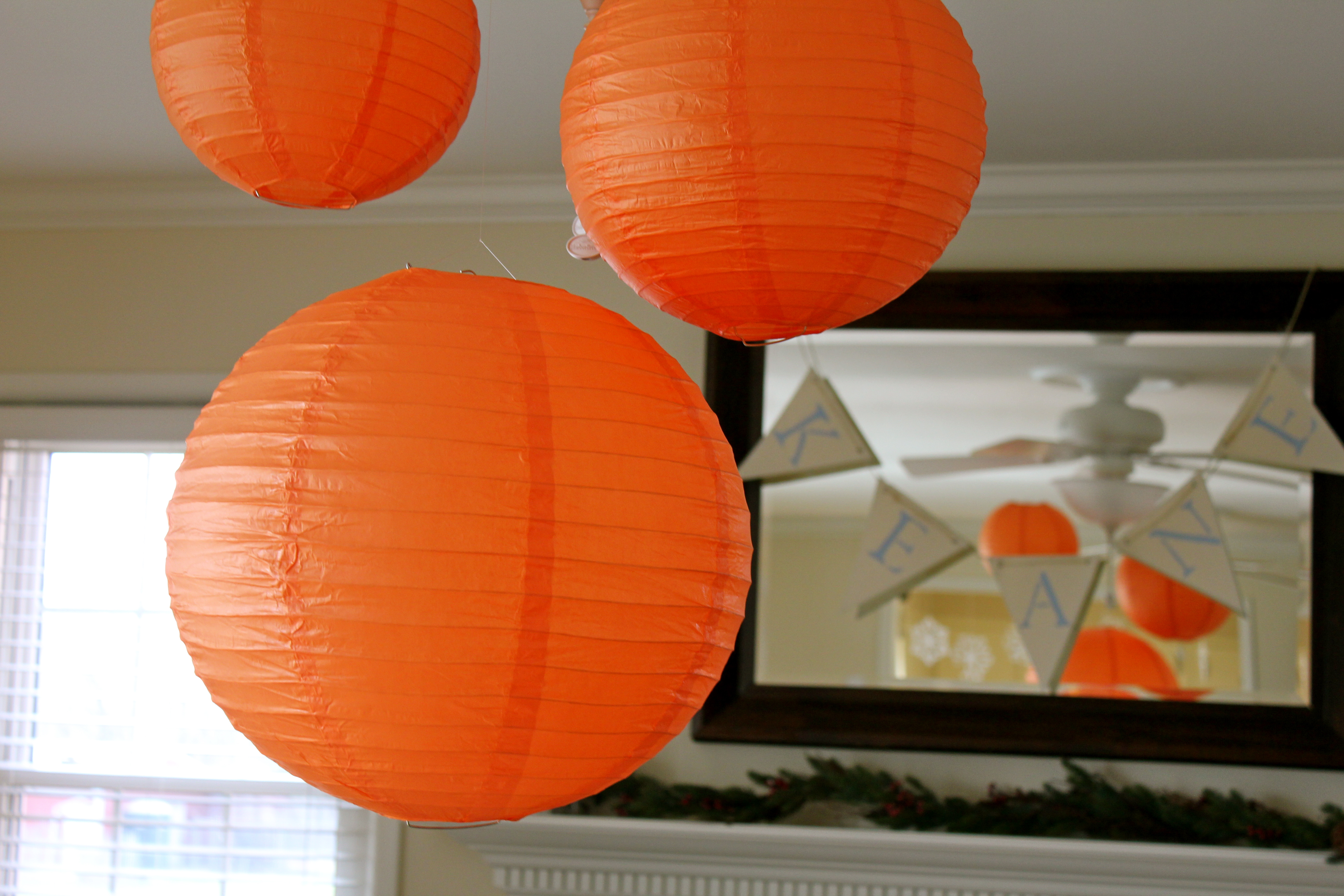 To round out the party decor, we hung orange paper lanterns…